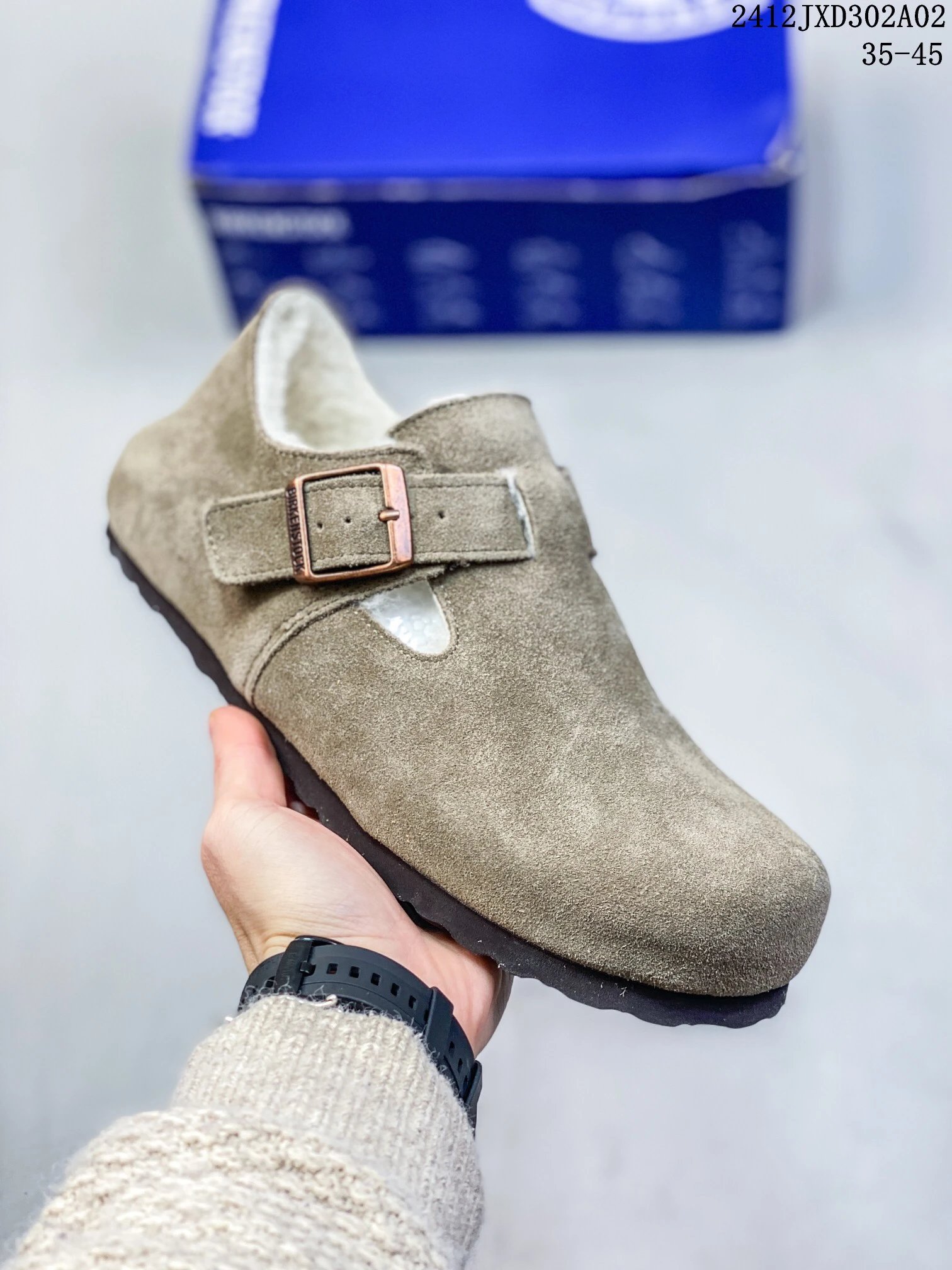 ✅Birkenstock Boston VL Suede Metal Buckle Cork-Soled Toe-Covered Slippers Soft nubuck leather upper with adjustable buckle for enhanced comfort Ergonomic design distributes foot pressure and protects ankles Cork latex footbed offers slight elasticity, conforming to foot shape over time EVA sole provides high rebound and tensile strength for superior shock absorption and cushioning and cushioning. Suitable for all seasons. The soft footbed incorporates an additional foam cushioning layer for enhanced comfort and all-day support. Exclusive online debut. Crafted with German precision. Upper: Nappa leather. Midsole: Pine wood. Outsole: Three-layer composite (EVA). Premium cowhide leather with metal buckle.