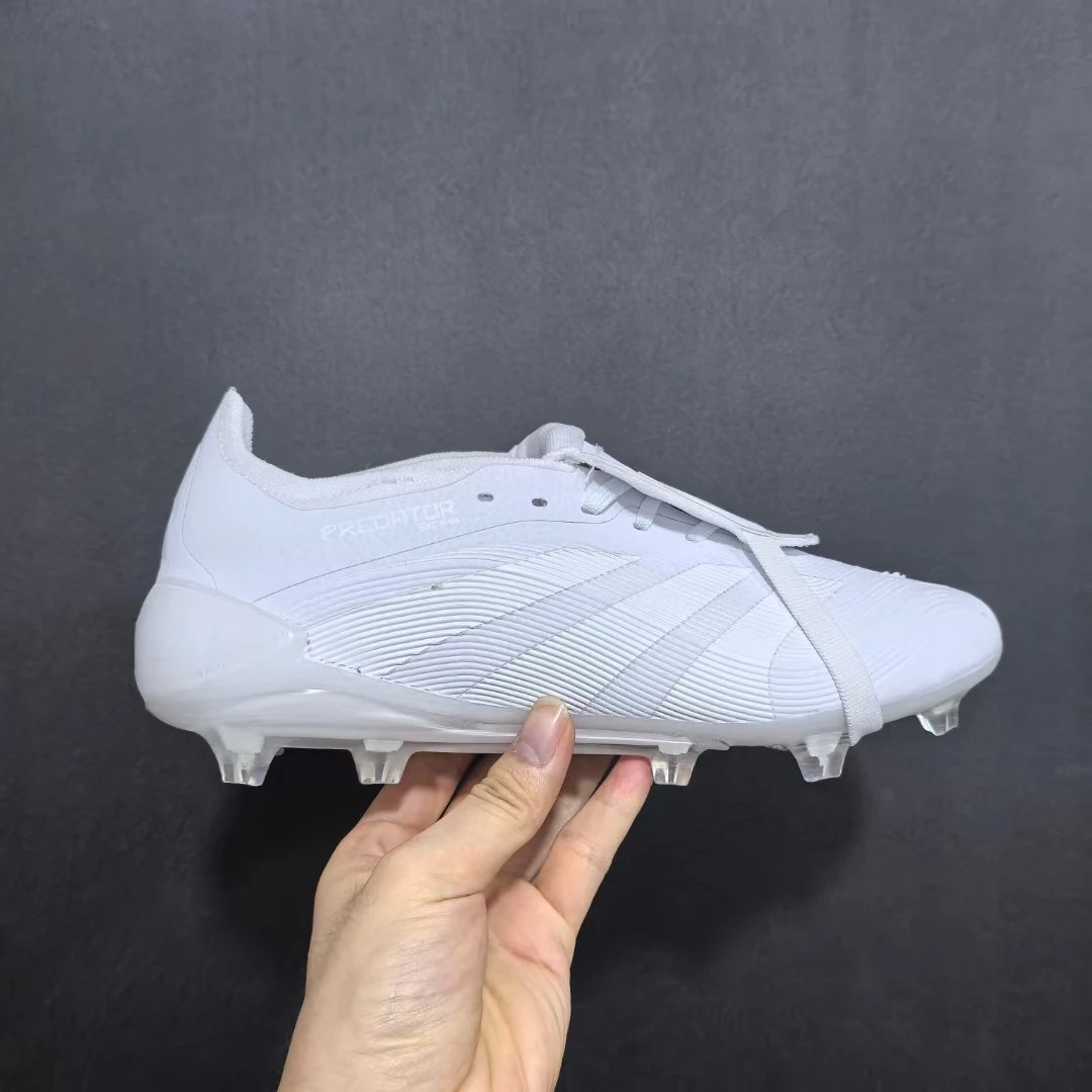 The 2025 Adidas New Falcon Low-Top White Soccer Cleats feature a uniquely ingenious design. The upper utilizes advanced synthetic materials that are not only lightweight but also offer exceptional flexibility and durability, maintaining a stable shape during intense athletic movements. The toe area undergoes special treatment to enhance abrasion resistance, withstanding frequent ball contact and friction.