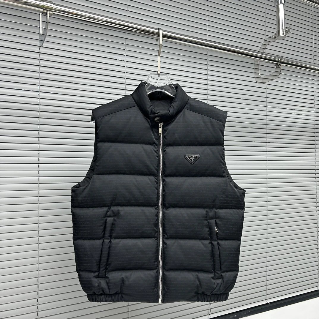 24SS Fall/Winter Prada Down Vest. Made with 90% national standard white duck down. Absolutely perfect fit. Authentic custom hardware, fully imported original design. Premium, sophisticated fabric with an incredibly soft feel. A must-have for fall/winter