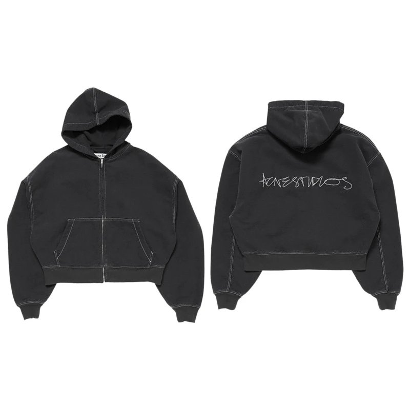 Acne Studios’ high-street embroidered hoodie in classic black channels streetwear flair. Crafted from premium terry cotton, it’s soft against the skin while breathable and durable. The cropped, relaxed fit features visible stitching for rich detailing. The signature embroidered logo on the back showcases brand recognition, making it versatile and practical. Adored by fashion influencers and trendsetters, this popular, well-reviewed piece is essential for creating street-style looks this fall/winter.