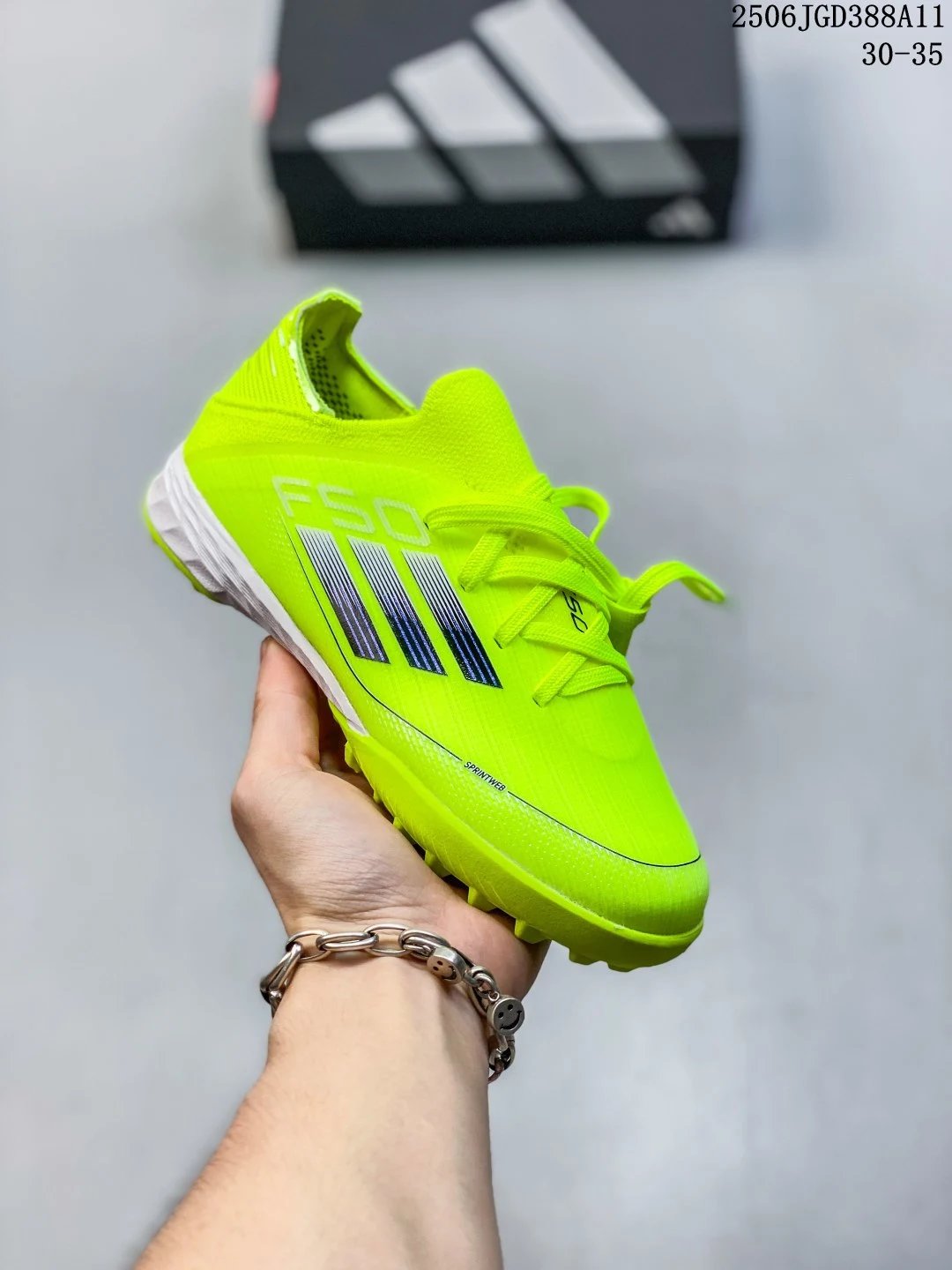 These Adidas Messi Falcon F50 soccer shoes are meticulously crafted for older children and students. Combining stylish design with exceptional performance, both the AG studs version and cleats version meet the demands of real matches and training across various field conditions. The AG studs provide outstanding traction and stability, allowing kids to run, change direction, and shoot with ease on the pitch. The studless version offers greater flexibility and versatility, suitable for multiple field types, delivering a more comfortable wearing experience. This football boot is undoubtedly an indispensable companion for children on their football journey.