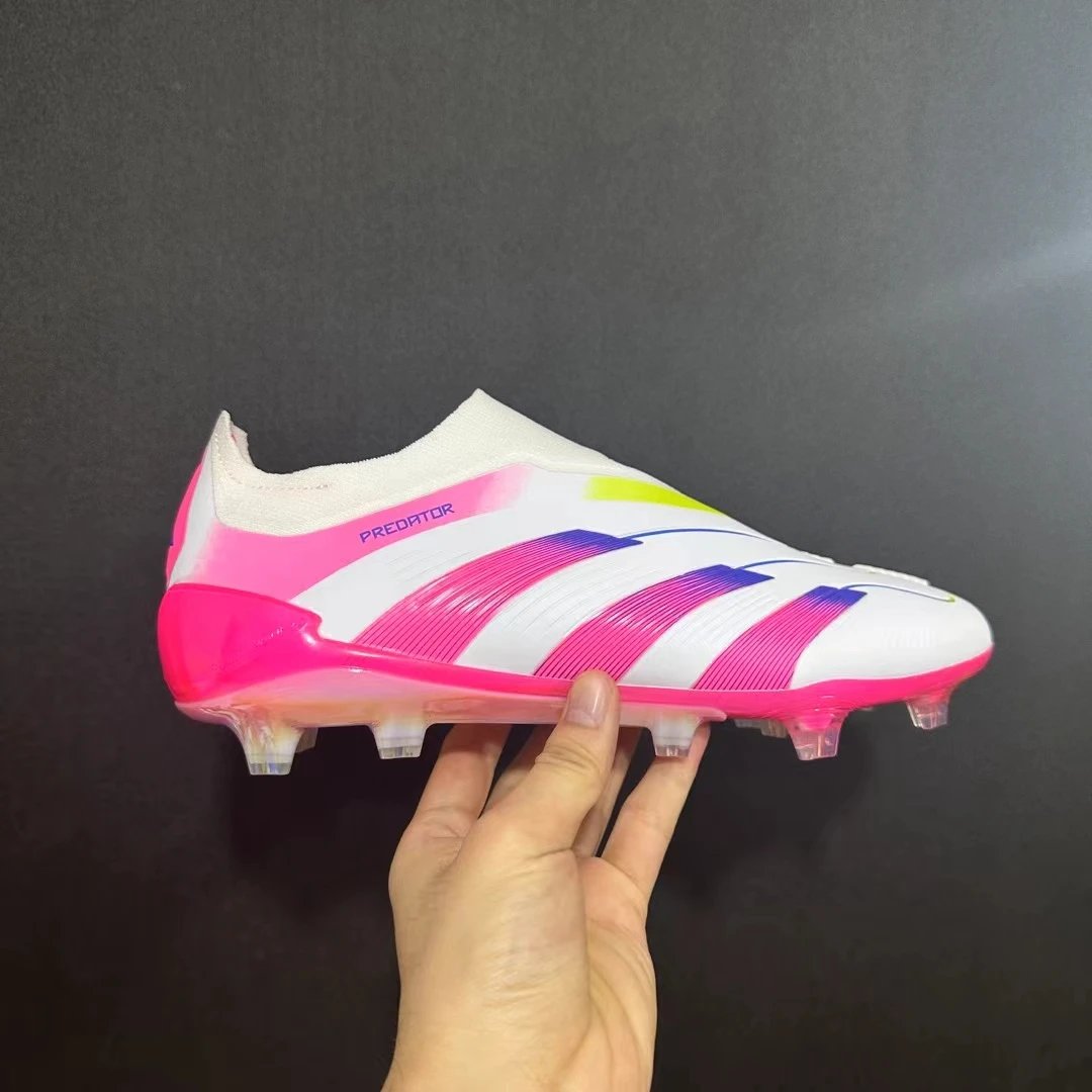 The Adidas Predator series football boots are renowned worldwide for their distinctive design and exceptional performance. Featuring advanced friction particle technology, these particles are strategically placed across the upper’s key ball-contact zones, significantly enhancing players’ control over the ball. Whether passing, shooting, or dribbling through defenders, players experience unprecedented precision and confidence. Simultaneously, the Predator series excels in soleplate design, utilizing lightweight yet highly grippy materials. This ensures stability during rapid changes of direction and acceleration, minimizing the risk of slips and injuries. Furthermore, its stylish appearance and diverse color schemes make Predator boots a standout on the pitch, earning them widespread popularity among players and fans alike.