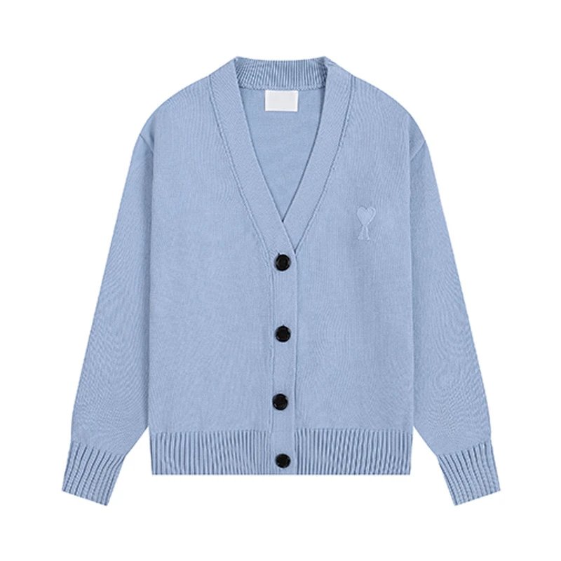 AMI Heart-Embroidered Light Blue Cardigan, Effortlessly Chic! Classic heart embroidery adorns the front, while the fresh light blue hue perfectly complements spring and summer outfits. Pair it with a T-shirt underneath or layer it over a dress for standout looks. Ideal for daily commutes or weekend getaways, this versatile piece is a must-have in any fashionista’s wardrobe.