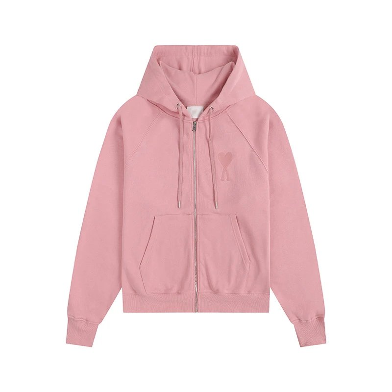 AMI Heart Series Pink Hooded Sweatshirt, a must-have for sweet-edgy street style! Classic hooded design adorned with signature heart embroidery. Soft pink tones brighten your complexion and add a youthful vibe. Pair with jeans for sharp, effortless commuting style. Match with a pleated skirt for campus dates to amp up the sweet girl charm. Embody lazy-chic with innate girlish energy. The centerpiece of every 2024 spring fashionista’s wardrobe, effortlessly unlocking early spring style. Versatile and universally flattering—a must-have for trendy, cool girls!