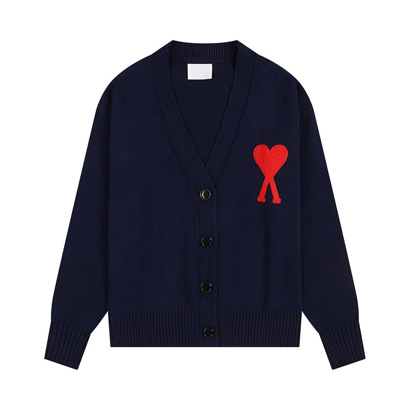 AMI Red Heart Navy Knit Cardigan