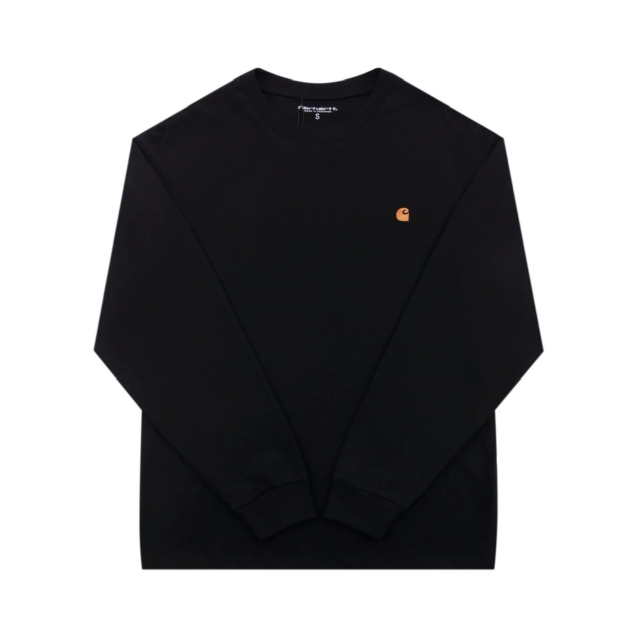 Carhartt Small Label Series American Streetwear Long-Sleeve T-Shirt in classic black. Crafted from premium cotton fabric, it offers a soft, breathable feel with comfortable, long-lasting wear. Features a minimalist small logo on the chest—understated yet instantly recognizable, embodying quintessential American street style. As a highly sought-after classic, its uncompromising quality and versatile appeal make it a favorite among trendsetters. Effortlessly transitions from daily commutes to casual outings, balancing practicality with style—an indispensable piece for any fall/winter wardrobe.