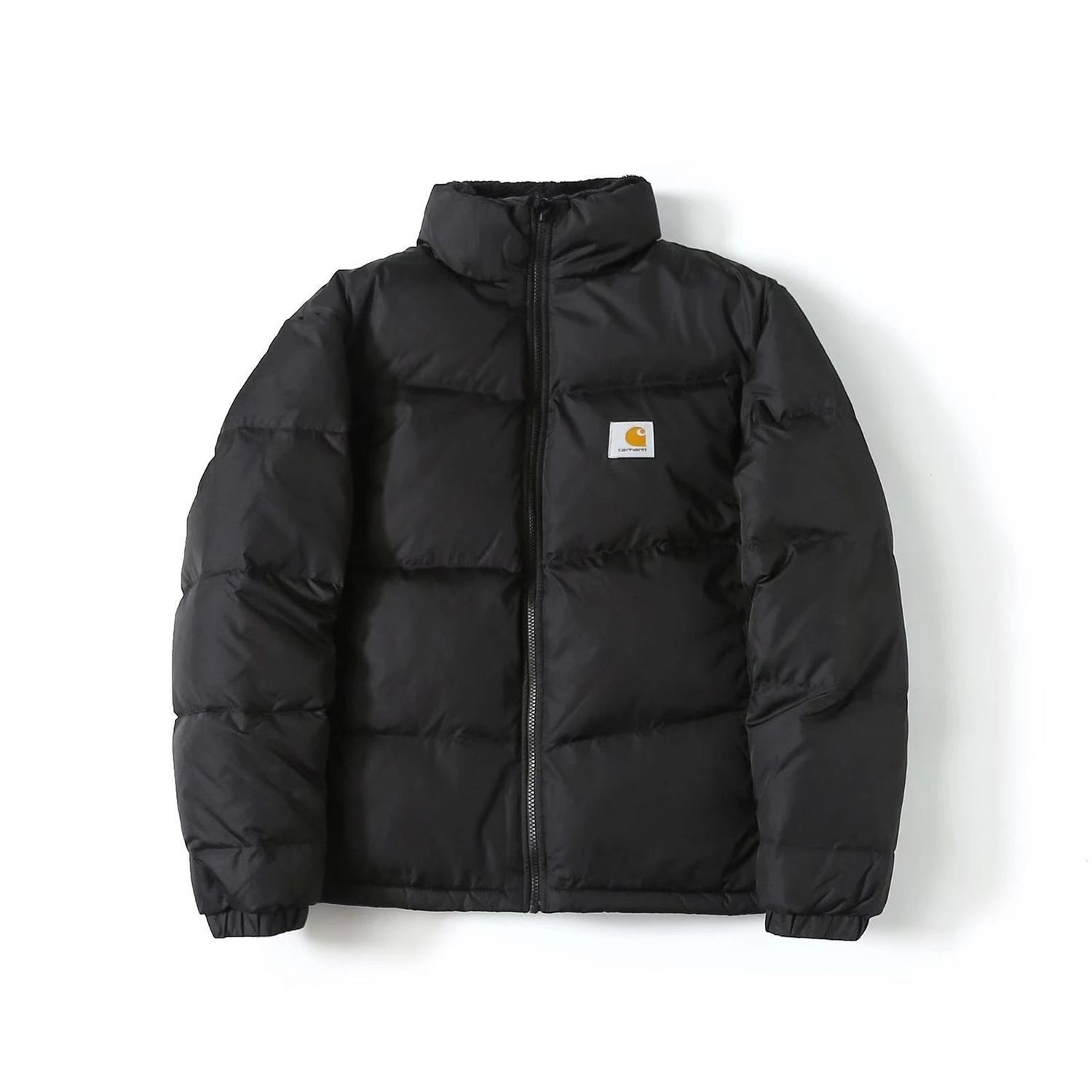 Carhartt Workwear-Inspired Black Down Jacket Inheriting the brand’s classic workwear DNA, this jacket features a structured silhouette with a crisp, tailored fit. Generous padding locks in warmth for cold weather. Layer it over a hooded sweatshirt for daily commutes, or pair it with straight-leg work pants or washed denim for outdoor looks. Clean lines collide with street-style flair. Aligning with the retro workwear revival trend, this is the essential piece for winter fashionistas crafting functional-chic looks. Its versatile black hue suits all, blending practicality with trendiness for effortless styling across multiple occasions.