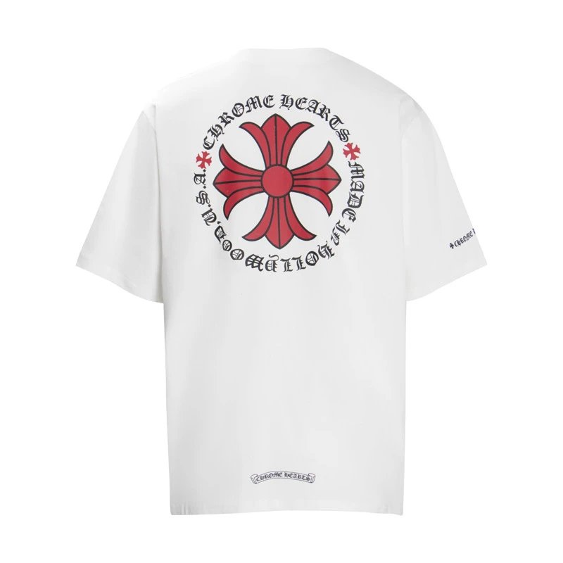Chrome Hearts Cross White T-Shirt, classic cross print on pure white fabric, blending street dark aesthetics with high-street luxury texture. The oversized fit accommodates diverse body types. Pair with washed jeans and retro sneakers for daily commutes, or match with tapered work pants and chunky-soled Dr. Martens for streetwear outings. A core piece for American retro enthusiasts, embodying unrestrained individuality and elevated street style.