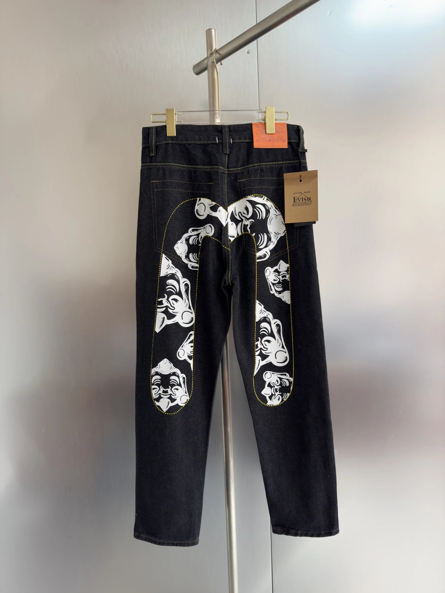 Evisu Lucky God Embroidered Denim Pants Unisex Style