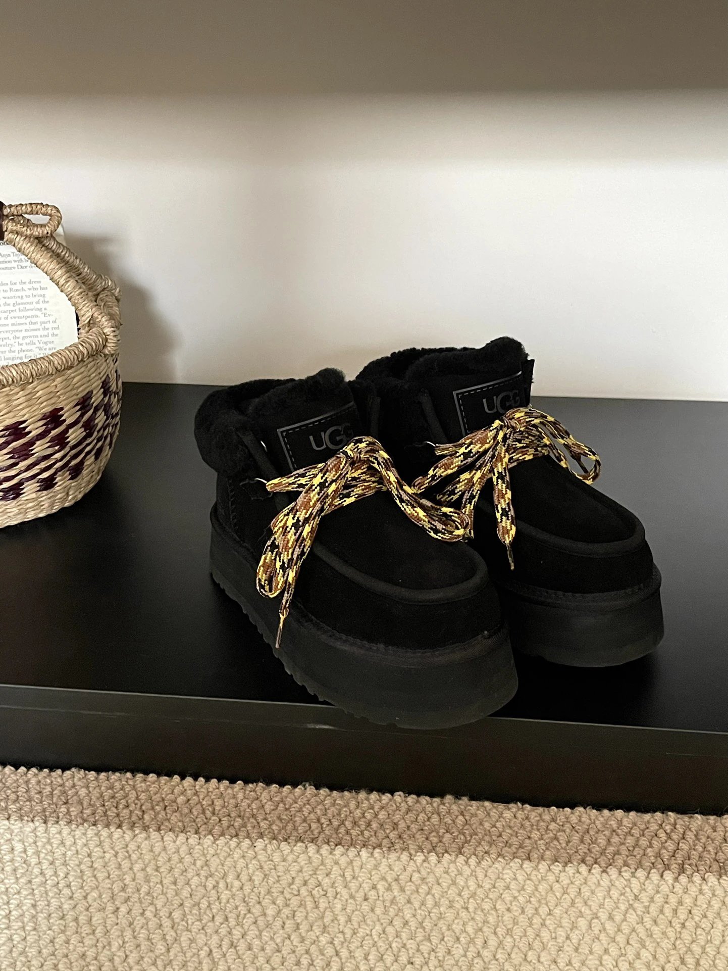 UGG Focala Lace-Up Slip-Ons in Black These UGG Focala lace-up slip-ons showcase classic black for understated elegance. Crafted from premium leather, the upper offers a refined texture and durable construction. The lace-up design adds a stylish touch while allowing customizable fit to suit individual foot shapes, ensuring all-day comfort. The meticulously crafted sole provides excellent slip resistance and durability, offering stable support whether you’re running errands or walking for extended periods.