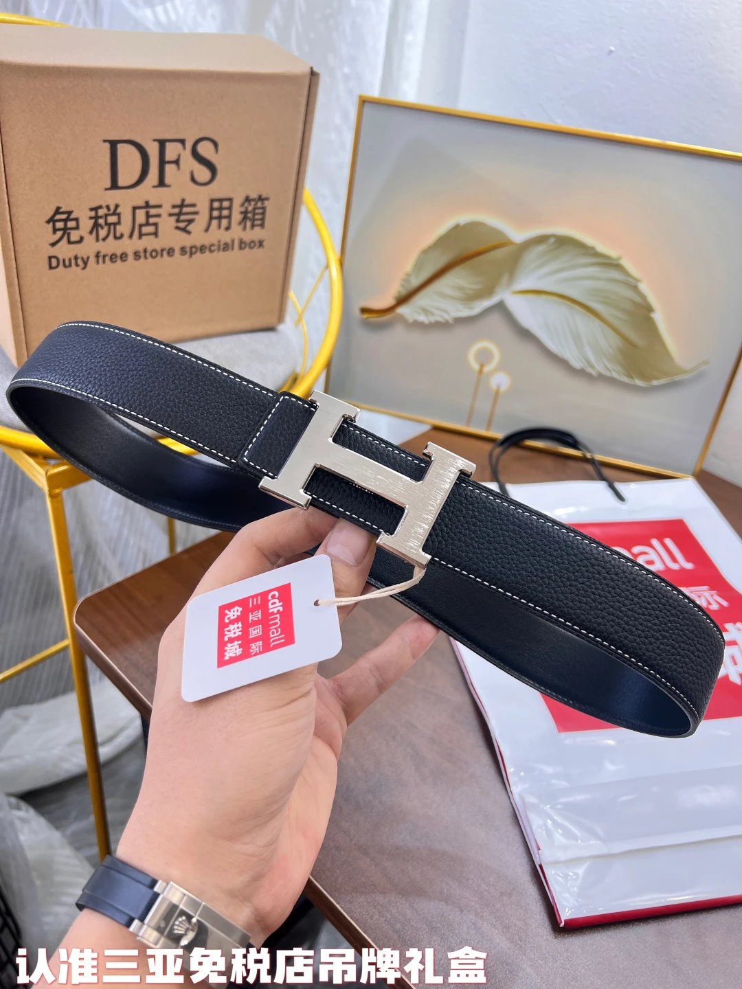 Hermes Black H-Buckle Men’s Belt, crafted from premium leather with distinct grain and rich texture, exudes understated luxury. The buckle features a distinctive H-shaped design that is both timeless and contemporary. Not only is it sturdy and durable, but it also adds a touch of sophistication to the overall look. With its moderate width, this belt pairs effortlessly with various trousers without appearing overly conspicuous. Whether for business settings or casual outings, it effortlessly elevates any outfit, adding a note of elegance and composure to a man’s wardrobe.
