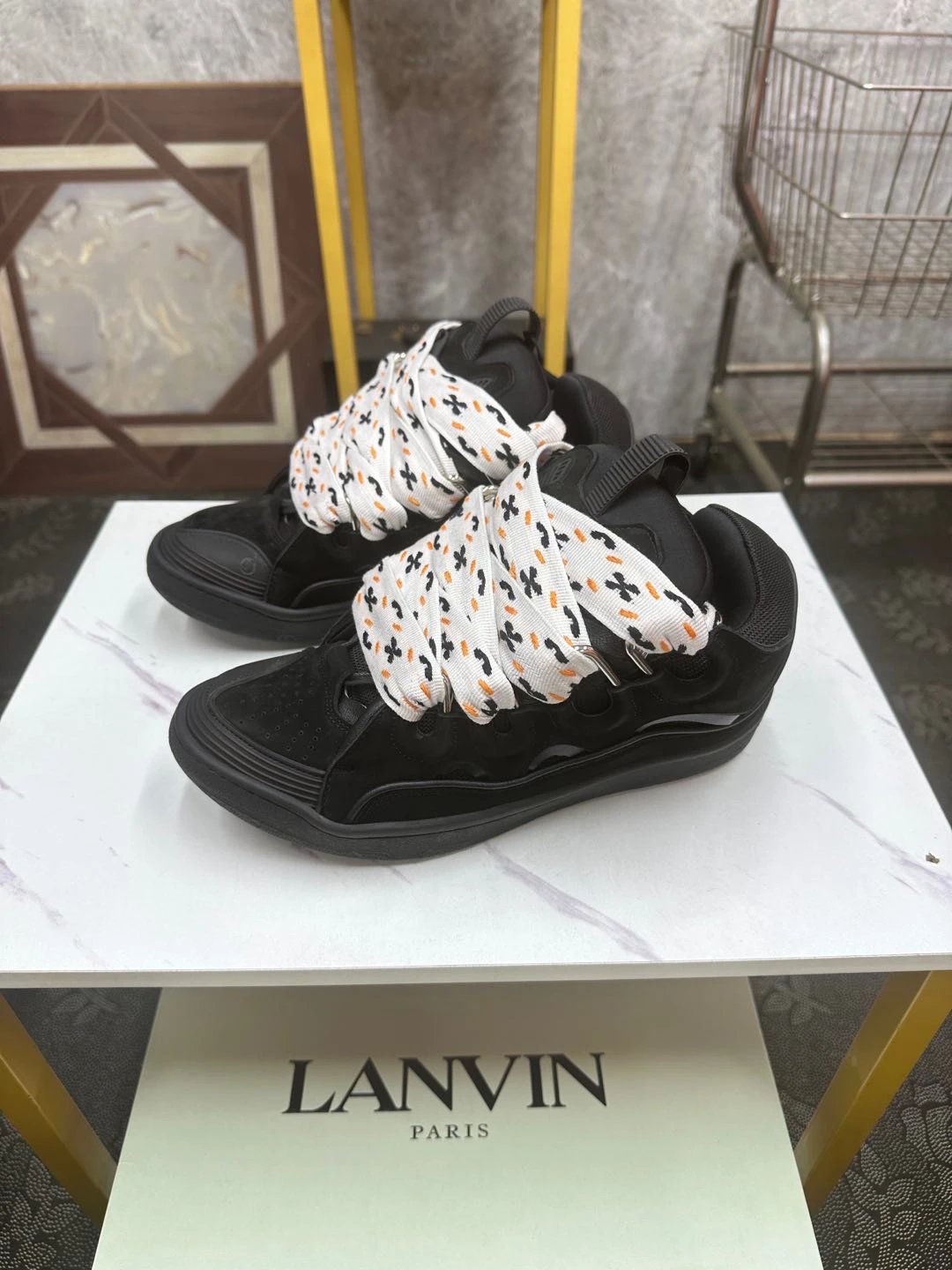 LANVIN’s black loafers, distinguished by their uniquely rounded toe design and supple leather construction, stand out as a vibrant highlight in the fashion world. The sleek silhouette, paired with an all-black palette, exudes sophistication and elegance. Whether worn for everyday outings or formal occasions, these loafers effortlessly showcase the wearer’s exceptional taste.