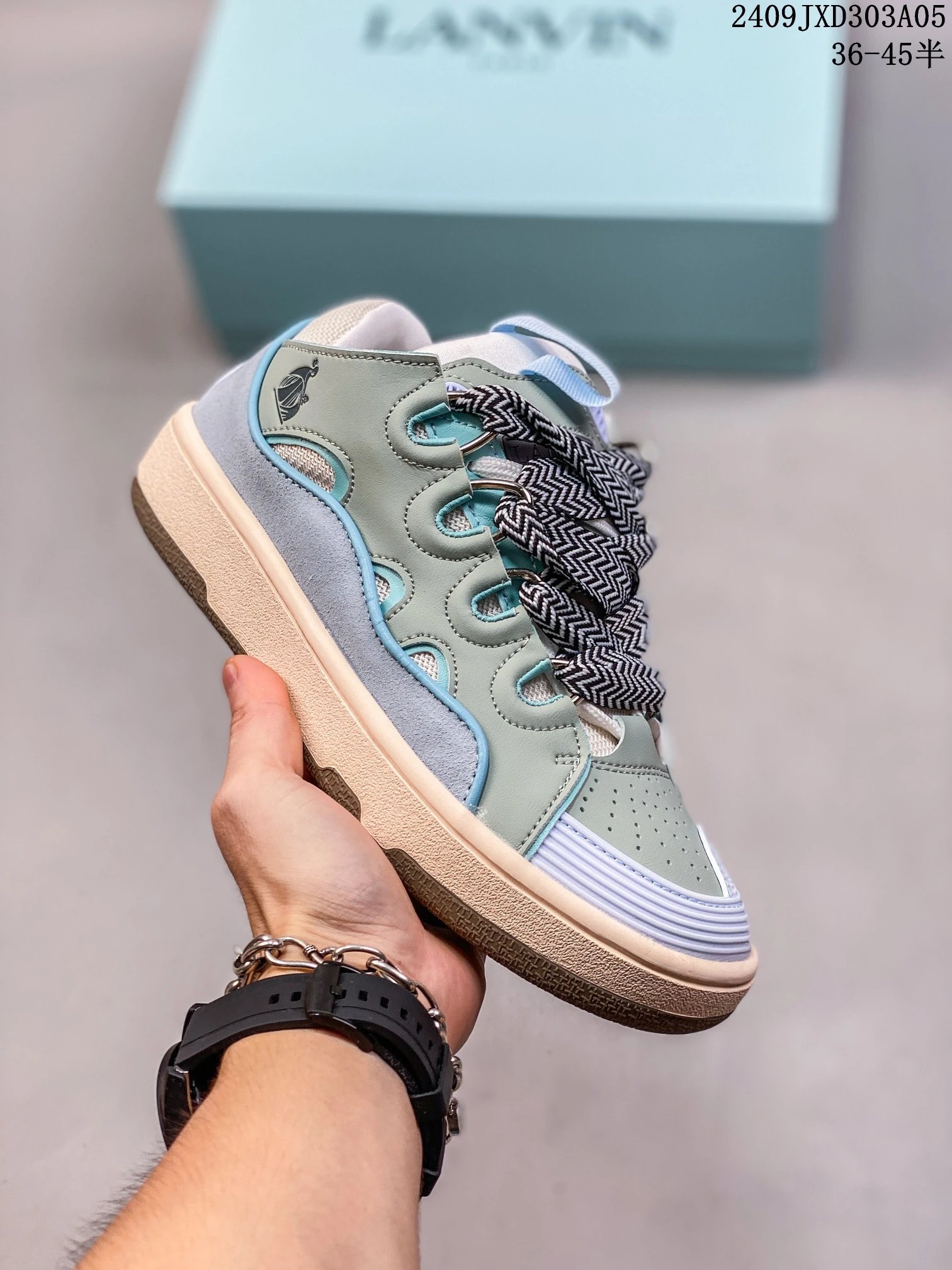 LANVIN Classic Breadcrumb Blue, with its distinctive hue and texture, stands as an enduring icon in the fashion world. This shade of blue strikes the perfect balance—neither overly bold nor lacking in sophistication. It seamlessly complements both formal business attire and casual streetwear, showcasing the wearer’s unique taste and style.