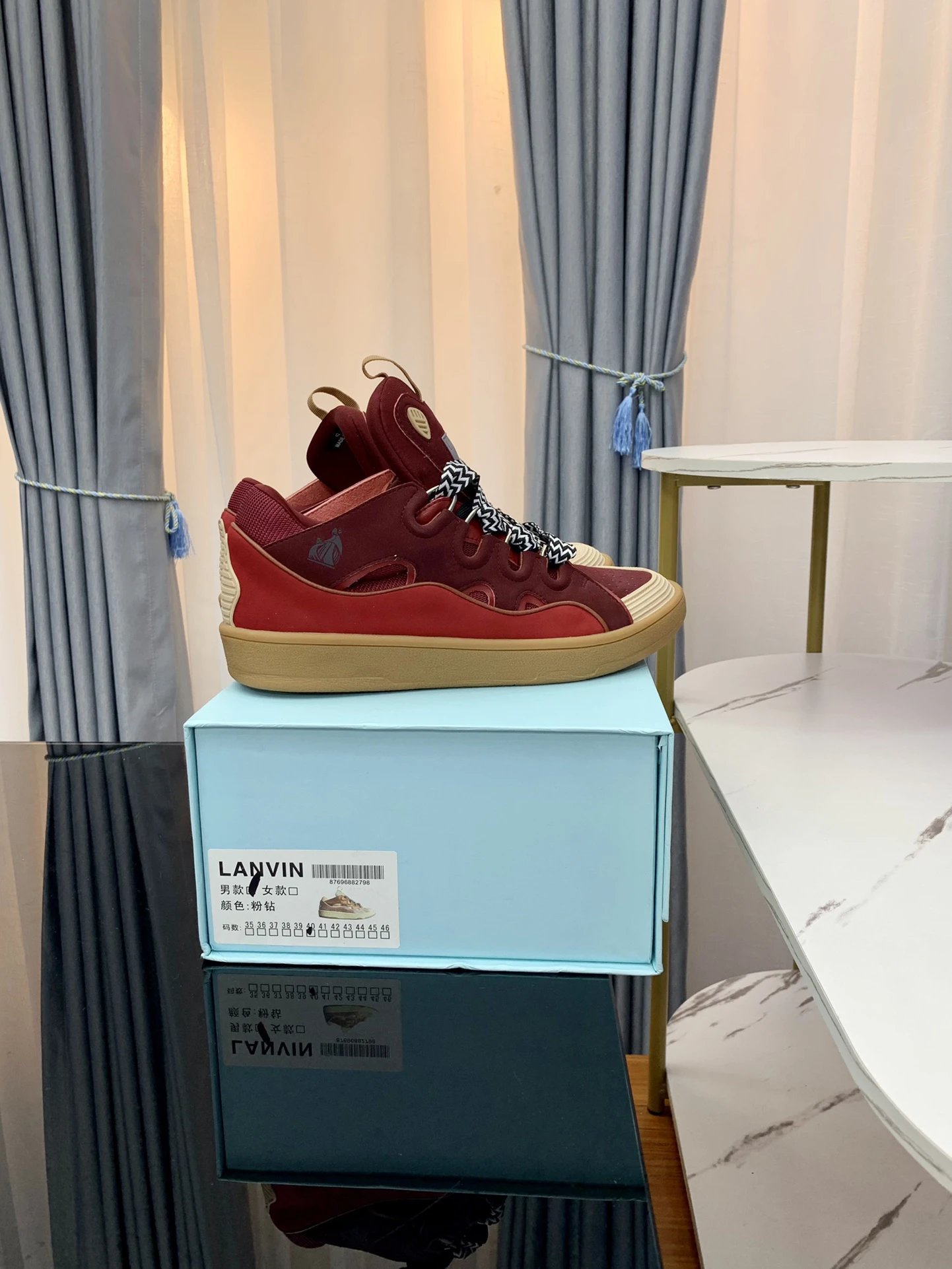LANVIN’s red loafer, with its distinctive retro style and vibrant color, has become a standout piece in the fashion world. Crafted from premium leather, this shoe offers a soft feel while being durable and long-lasting. The silhouette incorporates classic loafer elements, with a rounded, full-bodied shape complemented by a vibrant red hue. This design exudes individual charm while maintaining a fashion-forward edge. Effortlessly pairing with jeans or casual trousers, these shoes add a pop of color to your everyday wardrobe.