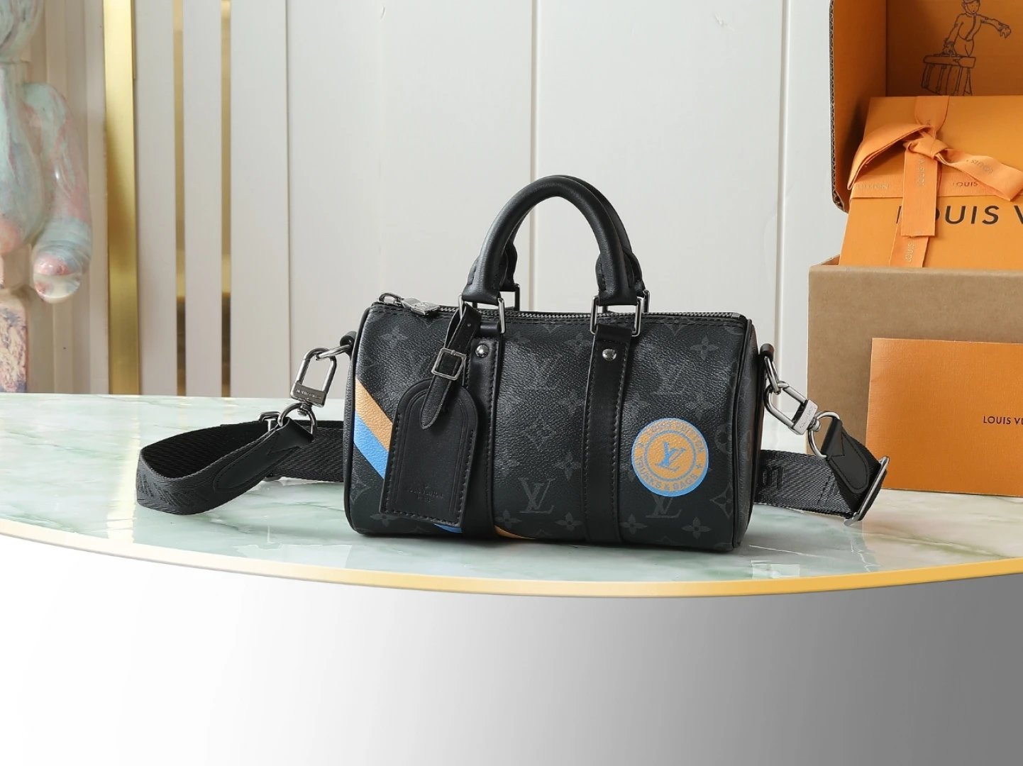 LV Boston Black Tote Bag: Blending retro-modern flair with elevated streetwear aesthetics, this versatile piece effortlessly transitions from daily commutes to casual gatherings. Its classic black hue unlocks endless styling possibilities, making it an essential accessory for trendsetters crafting distinctive looks.