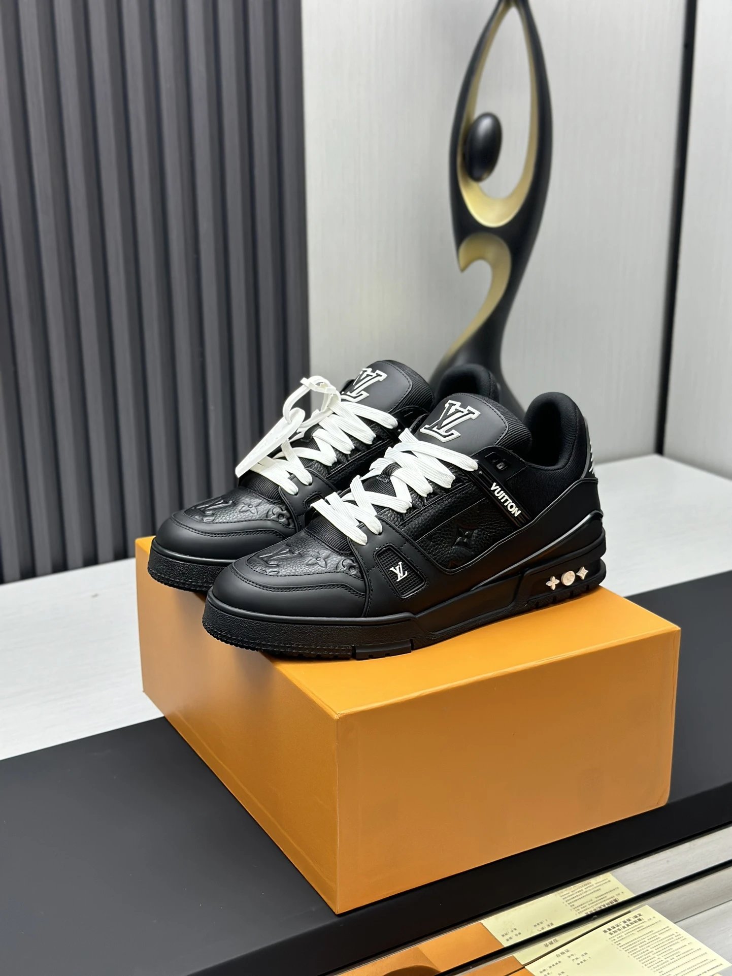 LV Trainer Casual Sneakers in Black: The ultimate streetwear icon! Classic black meets the brand’s signature design, with a minimalist silhouette that never compromises on premium quality. Effortlessly pair with jeans, sweatpants, or oversized hoodies for versatile looks across casual and streetwear settings. This versatile staple empowers trendsetters to craft unique styles, embodying a carefree attitude toward fashion.