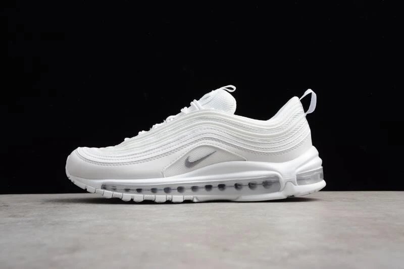 Nike MAX97 Korea Edition All-White Bullet This shoe debuts in a clean, pure all-white colorway, featuring sleek, dynamic lines throughout. The upper boasts premium materials—fine leather paired with breathable mesh—ensuring comfort while showcasing refined craftsmanship. The distinctive bullet-shaped outsole design delivers exceptional cushioning and support, effectively reducing pressure during walking or athletic activities. Its highly recognizable appearance has become a symbol of streetwear fashion. The tongue and lacing system are meticulously crafted: laces stay securely fastened without loosening, while the refined branding on the tongue highlights the brand’s appeal. Every detail underscores premium quality.