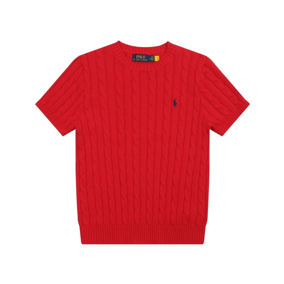 Ralph Lauren Embroidered Pony Logo Cable-Knit Round Neck Sweater