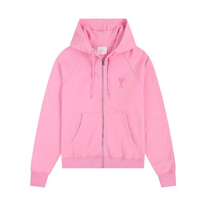 AMI Hooded Casual Pink Sweatshirt: Sweet yet edgy, effortlessly cool! The 2024 spring/summer favorite for trendsetters. Features an oversized dropped shoulder silhouette and skin-friendly cotton-feel fabric. Pair with high-waisted jeans or sweatpants and white sneakers for maximum eye-catching appeal during daily outings or dates. Unlock vibrant girly-chic styling—a must-have statement sweatshirt from a trendy brand!