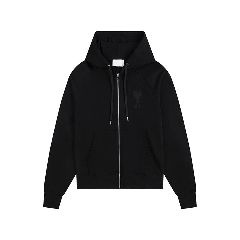 AMI Heart-Embroidered Black Hoodie (2024 Fall/Winter New Arrival) Maximizes French street-chic cool! Signature heart embroidery catches the eye, while the relaxed fit flatters all body types. Versatile for everyday layering, instantly elevates jeans/workwear into high-street icons. A must-have for trendsetters, effortlessly nailing that effortlessly chic autumn/winter vibe.