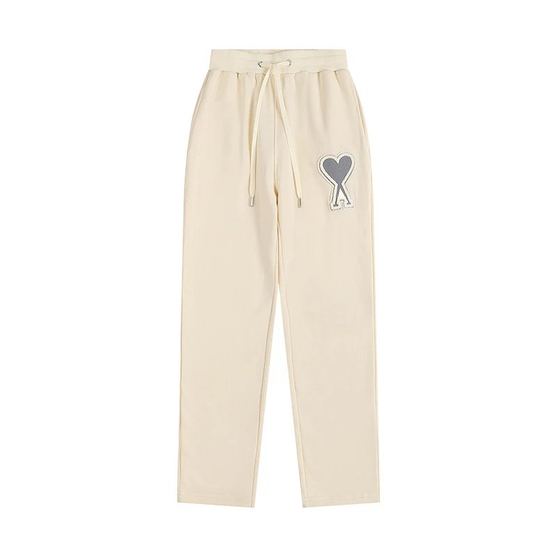 AMI Casual Athletic Beige Pants: Loose, slightly structured silhouette paired with soft, breathable fabric effortlessly elevates your athleisure look. Pair with a T-shirt/sweatshirt and sneakers for a must-have everyday streetwear/workout outfit, radiating effortless urban cool.