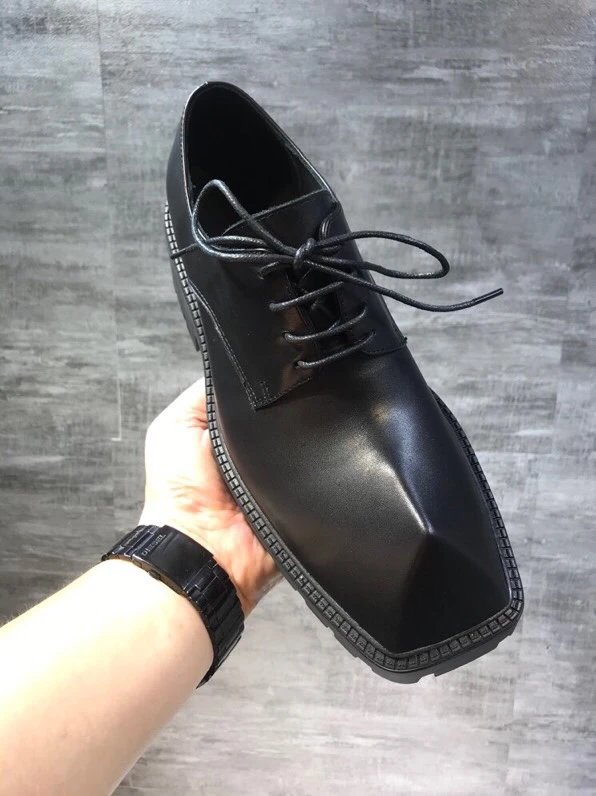 Balenciaga Lace-Up Black Leather Shoes, meticulously crafted from premium genuine leather. The classic lace-up design meets a clean silhouette, embodying the brand’s signature sophistication. Effortlessly versatile for daily wear with tailored trousers or streetwear with jeans, this essential piece blends quality and contemporary attitude.