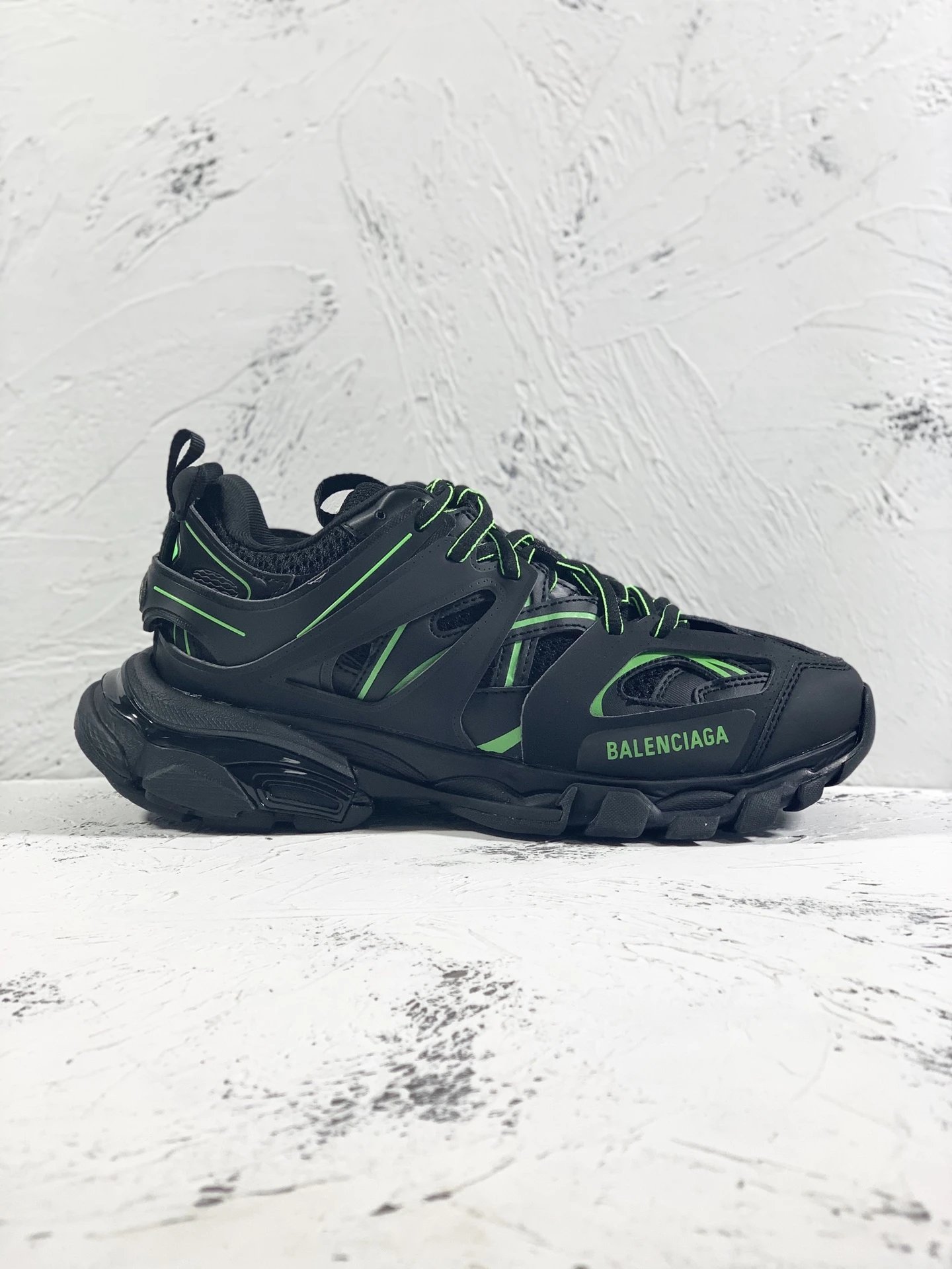 Balenciaga Track Black Dad Sneakers: Retro streetwear meets functional futurism. Multi-layered panels and a chunky sole elevate the edgy aesthetic. Effortlessly pair with workwear pants and hoodies for 2024’s most eye-catching street looks. A signature piece from the luxury streetwear brand, where every detail defines its DNA—an essential for trendsetters.