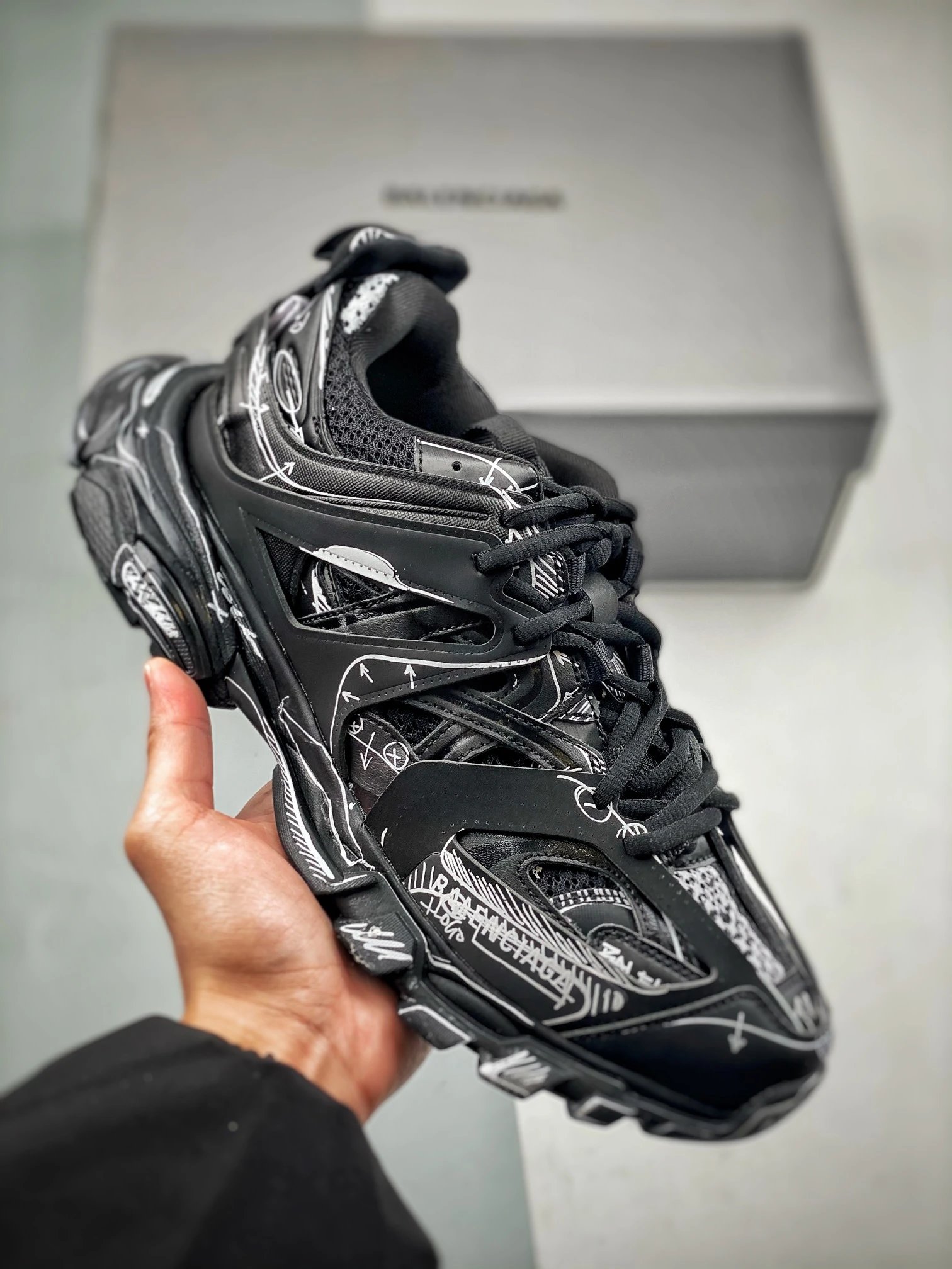 Balenciaga Track Black Dad Sneakers: Retro street-sport style with maximum cool factor! Signature layered construction meets elevated thick soles, while breathable mesh panels blend with tech fabrics for both trendiness and practicality. Pair effortlessly with jeans or sweatpants for daily outings, or mix with dresses for edgy flair. A must-have high-street piece for trendsetters, embodying an unrestrained fashion attitude.