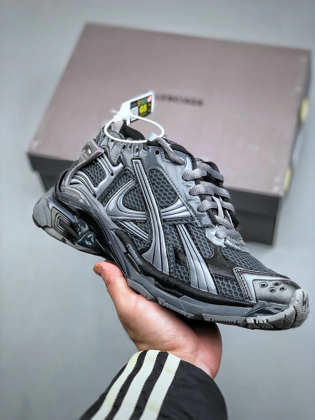 Balenciaga Track Black-Gray Sneakers: Where functional aesthetics meet retro-futurism. A multi-layered deconstructed upper in black-gray gradient colorways effortlessly transitions from daily commutes to streetwear looks. Equipped with cushioning technology, they blend comfort with edgy style—a must-have statement piece for trendsetters showcasing high-street fashion flair.