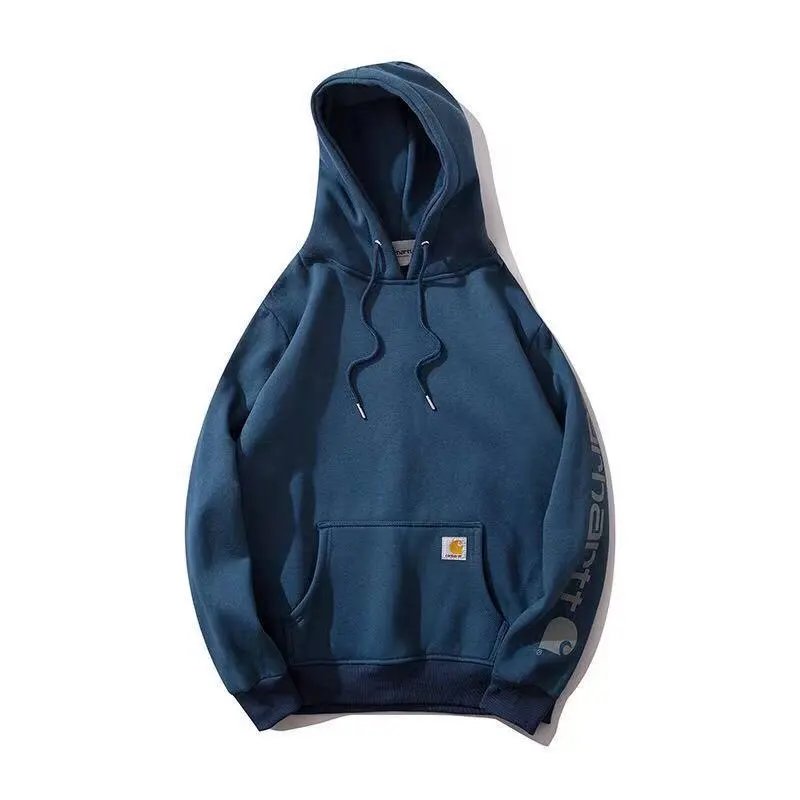 Carhartt Classic Workwear Series Navy Hoodie Embodies the brand’s signature American workwear aesthetic with a relaxed, retro-inspired design that pairs effortlessly with any outfit. Crafted from premium thick terry cotton fabric, it offers a soft, skin-friendly feel with exceptional warmth for comfortable everyday wear. The classic hooded design features an adjustable drawstring, while the iconic chest patch enhances brand recognition. Sleeve lettering prints inject street-style flair, and the kangaroo pocket combines practicality with style. As a top-selling item renowned for its durability and vintage workwear charm, it remains a go-to choice for trendsetters in daily commutes and streetwear ensembles.