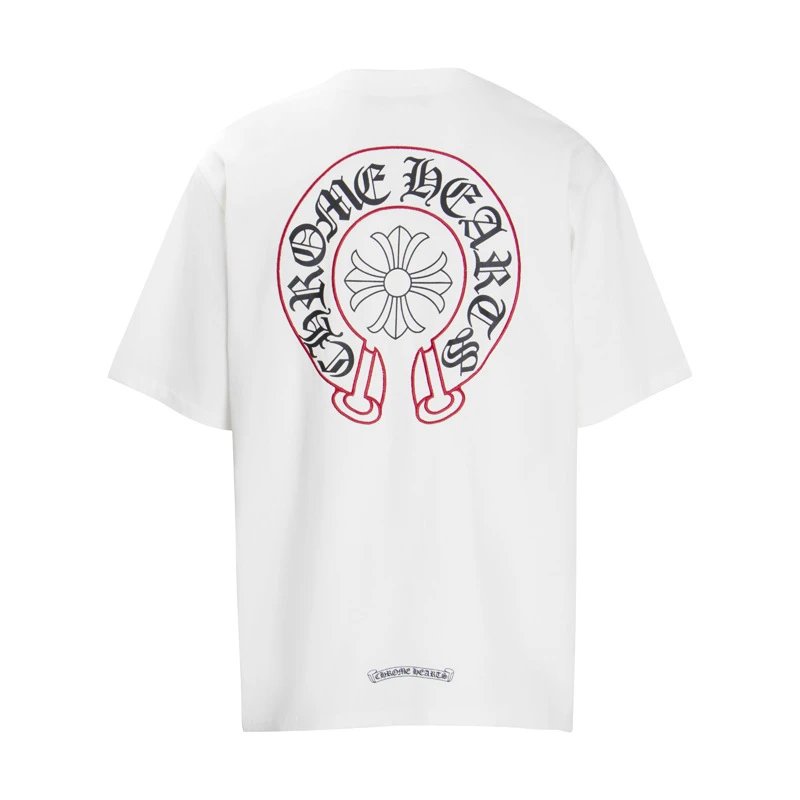 Chrome Hearts ONE HEART Printed White T-Shirt, classic street style. The iconic heart print embodies pure streetwear attitude. Its versatile white base effortlessly pairs with jeans, work pants, or leather trousers. Match with sneakers or Dr. Martens boots, layer with silver accessories for added personality, and easily create everyday casual or edgy street looks. An indispensable fashion staple for any trendsetter’s wardrobe.