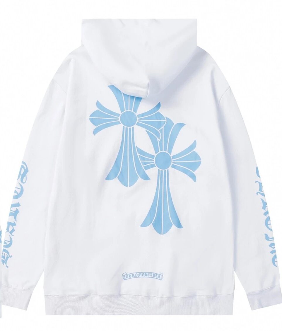 Chrome Hearts Cross Series Streetwear White Hoodie: The iconic cross motif collides with street fashion. Its relaxed silhouette suits both casual wear and layering. The pure white base offers versatile, durable styling, while signature details showcase brand recognition. This essential piece elevates high-street looks, effortlessly capturing the essence of streetwear icons.
