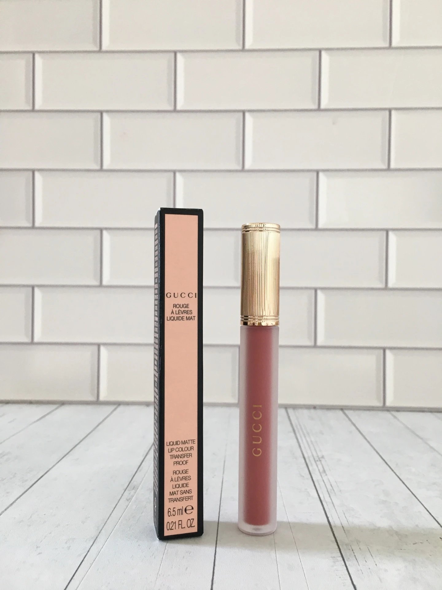 Gucci Matte Lip Lacquer in Bean Sand | Italian luxury velvet matte lipstick. Its soft-focus texture is smooth and refined, delivering long-lasting color without drying. Perfect for commuting makeup, date-night no-makeup makeup, or retro Hong Kong-inspired looks. The low-saturation rose-beige tone gently brightens complexion, flattering both fair and warm skin tones. The 2024 Fall/Winter trend-setting lip favorite, it interprets everyday aesthetics with a sophisticated matte finish. Effortlessly elevates minimalist or vintage outfits, exuding understated luxury.