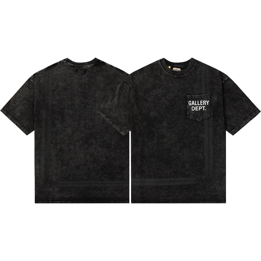 GALLERY DEPT. Distressed Black T-Shirt: Classic black meets distressed holes and frayed edges, embodying the signature retro vibe of streetwear brands. Pair effortlessly with washed denim or workwear shorts for high-street casual flair. This versatile piece channels an unrestrained attitude, making it a must-have for turning heads on the streets.