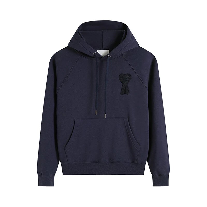Heart Embroidery Streetwear Navy Hoodie AMI
