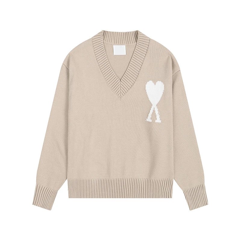 Heart V-Neck Beige Sweater AMI