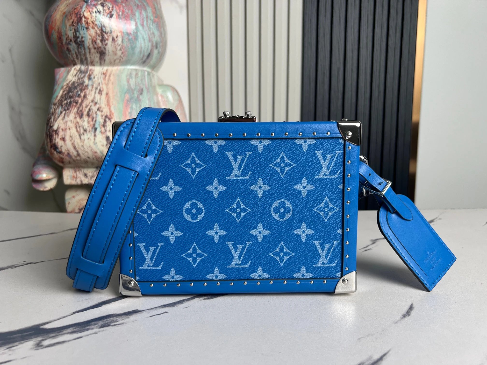 LV Petite Malle Trendy Blue Bag: Avant-garde design fuses classic Monogram elements, effortlessly elevating streetwear and commuter looks. Vibrant blue leather accented with metallic clasps embodies French elegance and modern street attitude—an indispensable statement piece for the stylish wardrobe.