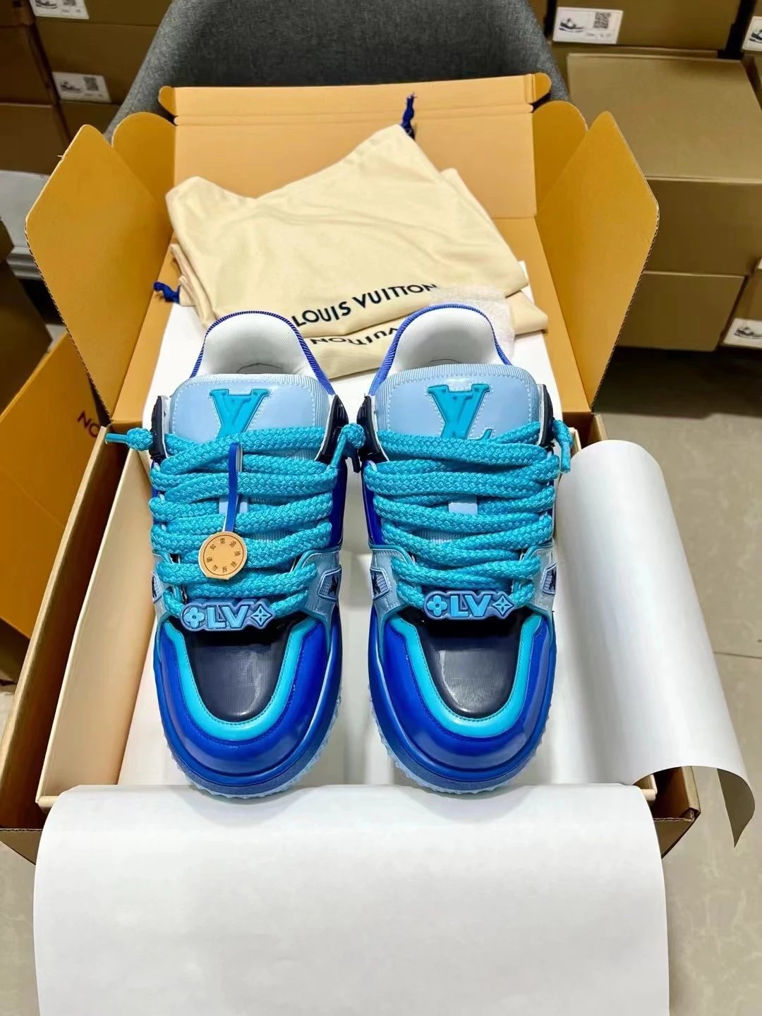 LV Trainer Blue Sneakers blend retro street style with luxury DNA. Iconic Monogram canvas meets refined leather, while the low-top silhouette and thick, slip-resistant rubber sole deliver sharp, edgy flair. Effortlessly mix and match with workwear pants, denim skirts, or athletic sets for versatile styling—perfect for city strolls or trendy gatherings. This eye-catching staple helps fashion influencers nail their street looks, embodying a relaxed yet sophisticated attitude.