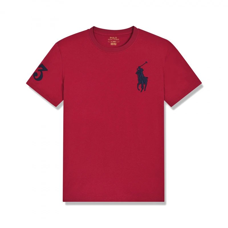Ralph Lauren Large Horse Embroidered Crew Neck Polo Shirt Burgundy