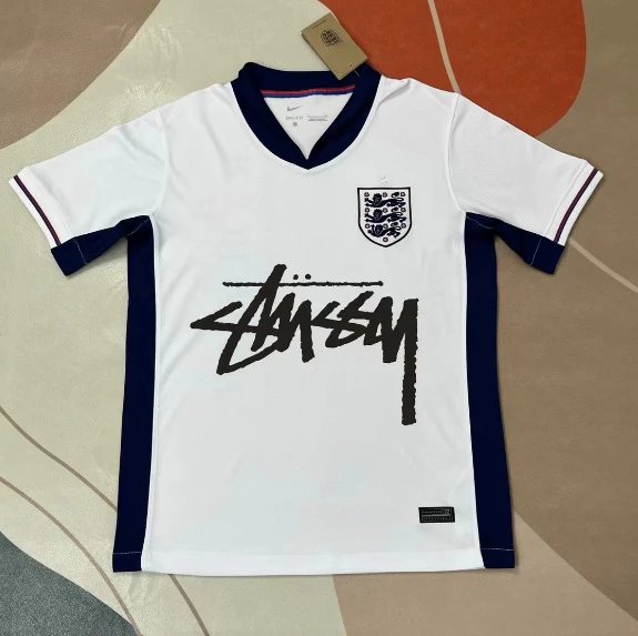 Stussy x England Collaboration White & Blue Contrast Soccer Jersey