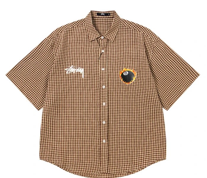 This short-sleeve shirt features a classic plaid pattern with brown as the dominant color, exuding a vintage yet fashionable style. Crafted from soft, comfortable fabric with excellent breathability, it’s perfect for spring and summer wear. Additionally, the shirt’s tailored fit flatters the wearer’s figure. Whether paired with casual trousers or jeans, it effortlessly creates a relaxed yet tasteful everyday look.